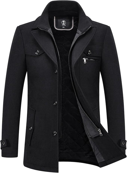Mens Wool Coat Thick Trench Coat Stand Collar Warm Jacket Coats Winter Overcoat(1*Jacket+1*Gilet)