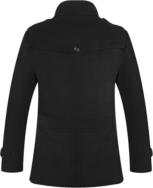 Mens Wool Coats Short Winter Padded Trench Coat for Casual Business Outwear Thick Wool Blend Peacoat with Removable Inner Collar