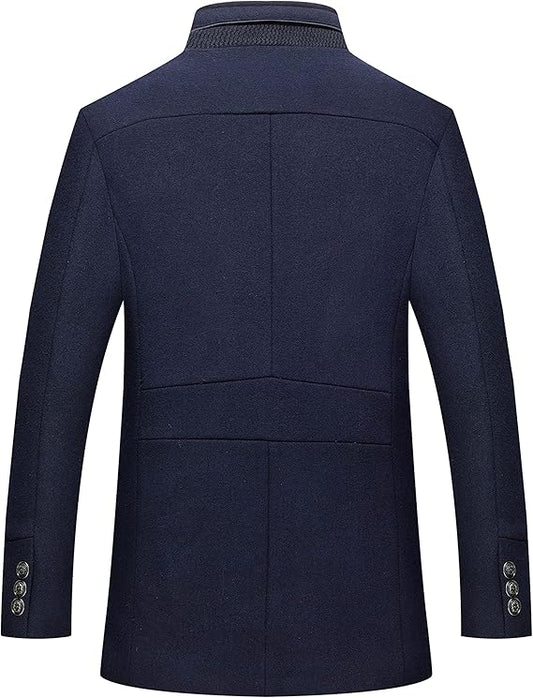 Mens Winter Trench Coat Stand Collar Warm Wool Blend Casual Patchwork Outwear Button Down Peacoat
