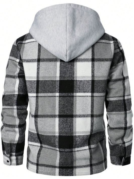 Manfinity Homme Men Plaid Drawstring Hooded Going Out Casual Shacket Without Tee